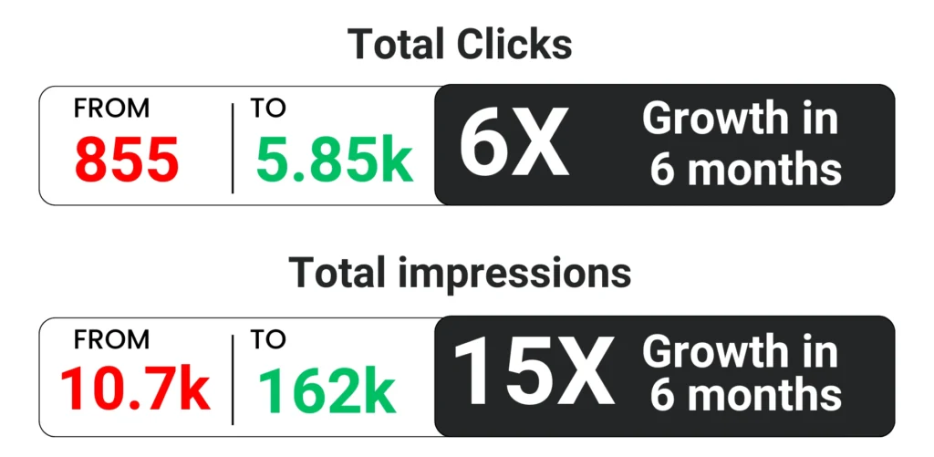 6x Growth in Clicks & 15x Growth in Impressions in Just 6 Months